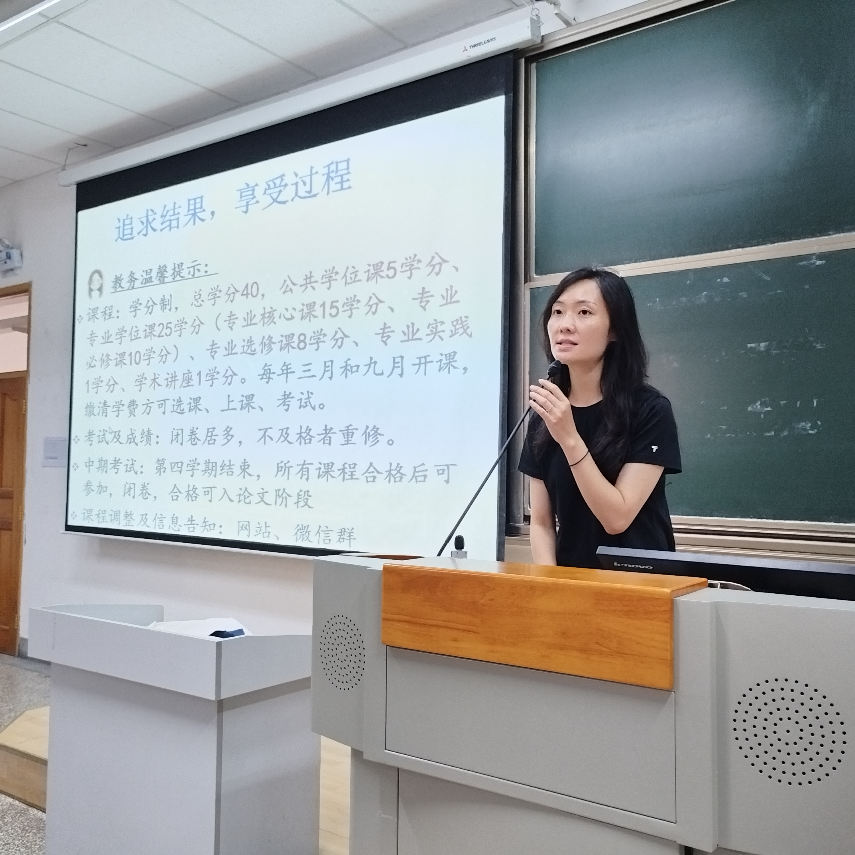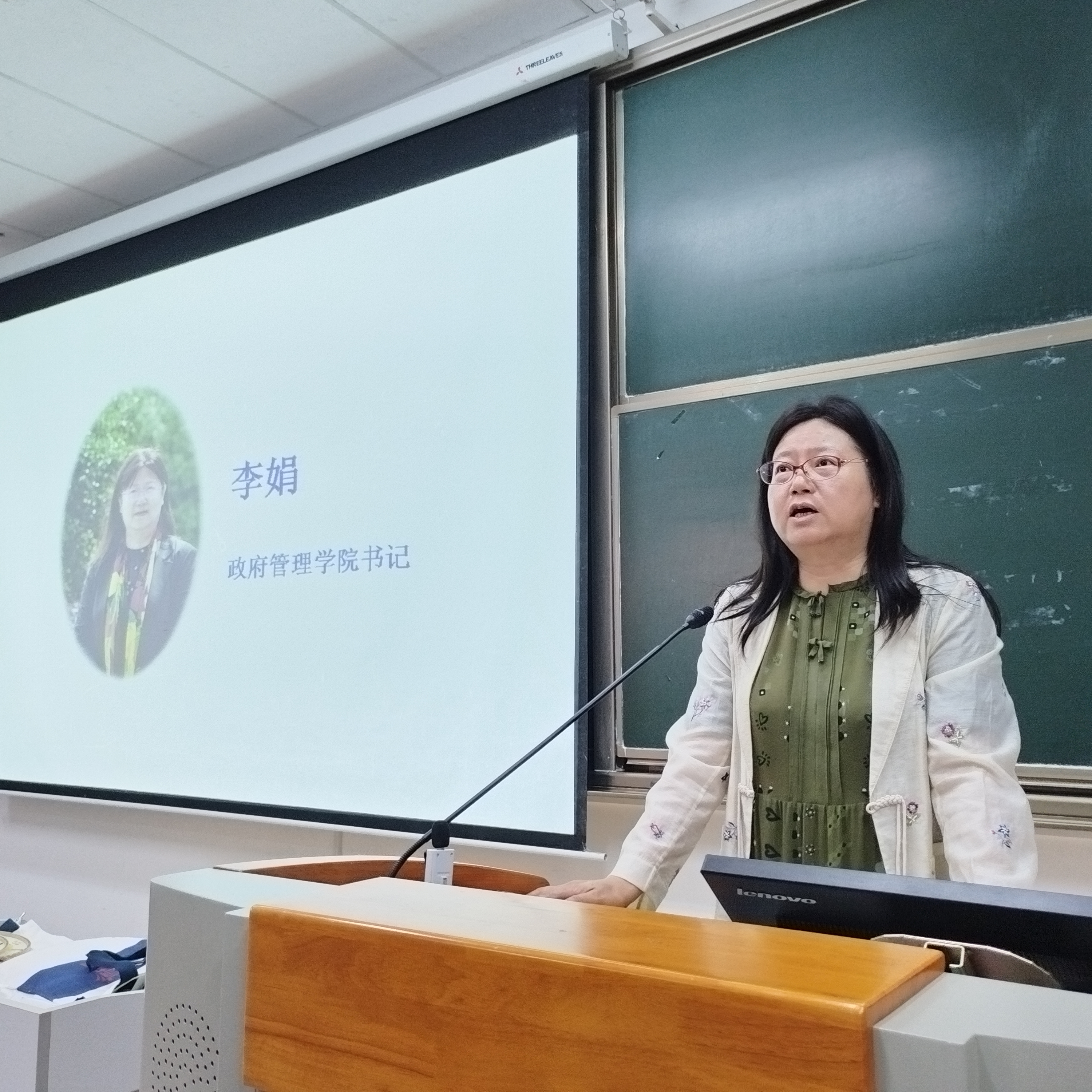 李娟书记代表全院师生向新生表示欢迎,强调各位新生要坚持“人本”精神,强化责任意识,砥砺品德、增长才干、全面发展,努力成为有理想、有本领、有担当的公共管理者。