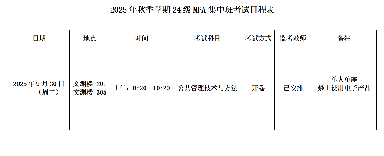 本学期2025年9月30日,24级集中班、25级集中班的期末考试安排如下: