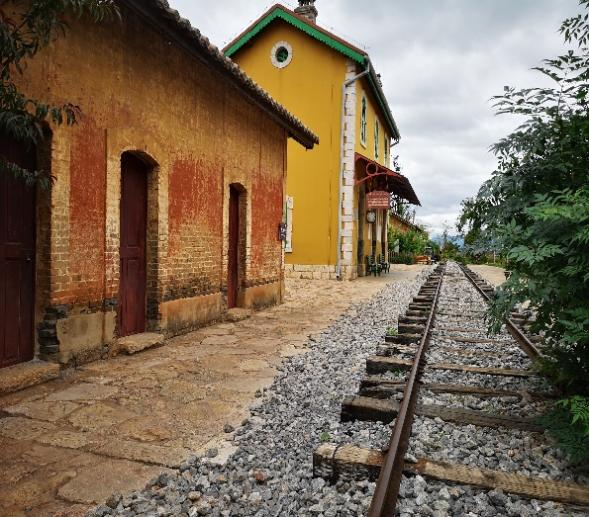 6月27日早晨,师生党员们来到了蒙自草坝镇,在这里参观了碧色寨滇越铁路小镇。从蜿蜒的铁路旧址、法式建筑风格的小车站,到静谧的“大通公司”、开阔的红土地网球场,米轨和寸轨交汇的碧色寨,犹如一座活化石般的滇越铁路博物馆,承载着丰富的历史文化内涵。通过参观学习,师生党员生动直观地了解了中国和云南的近现代铁路交通发展史,认识到先进生产工具对于解放生产力、解放思想,为人民谋幸福的积极作用,表示在学习生活中要践行哲学理论创新以人民为中心的发展目标。
