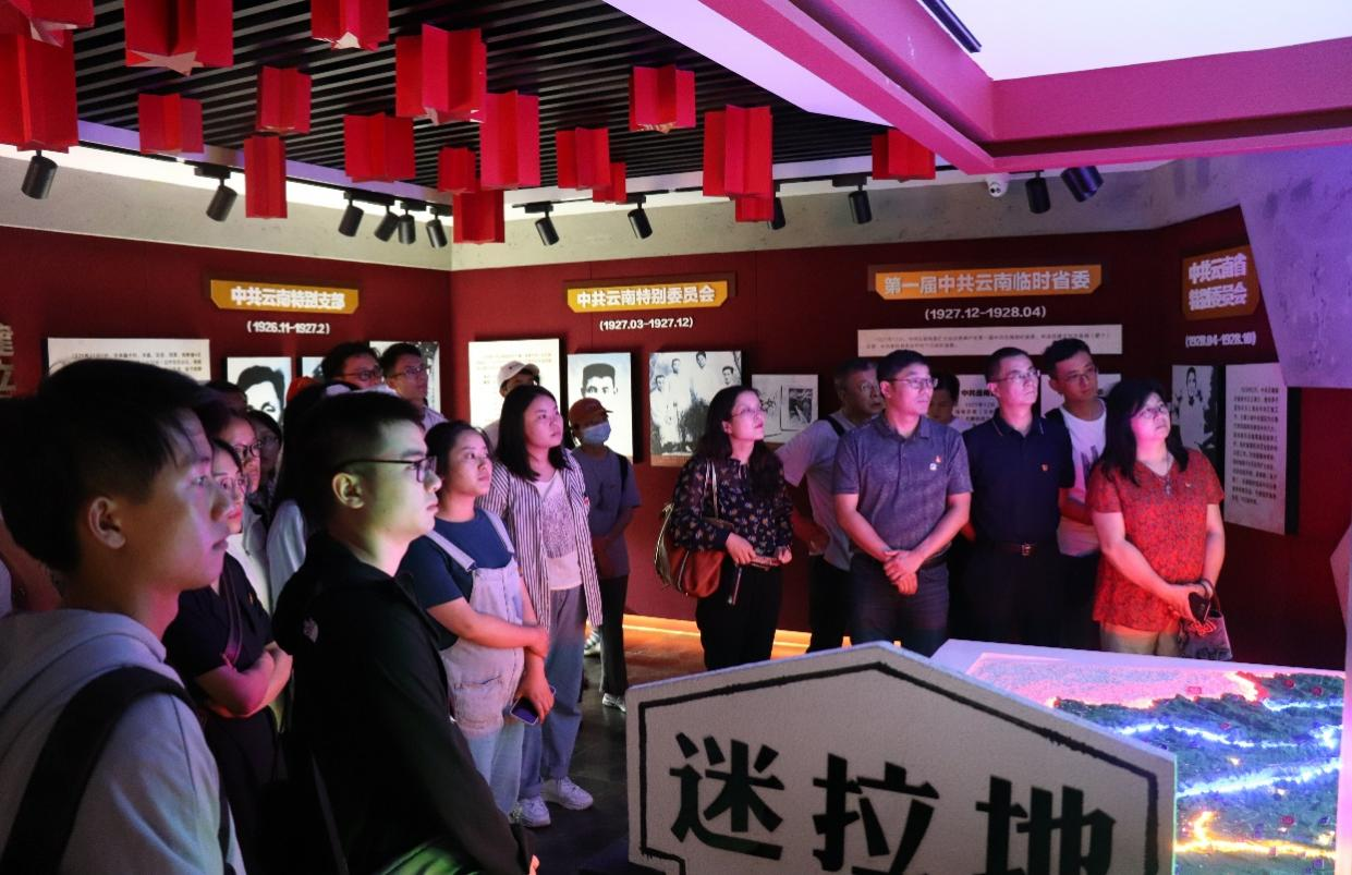 师生党员聆听讲解员介绍西南联大蒙自分校历史