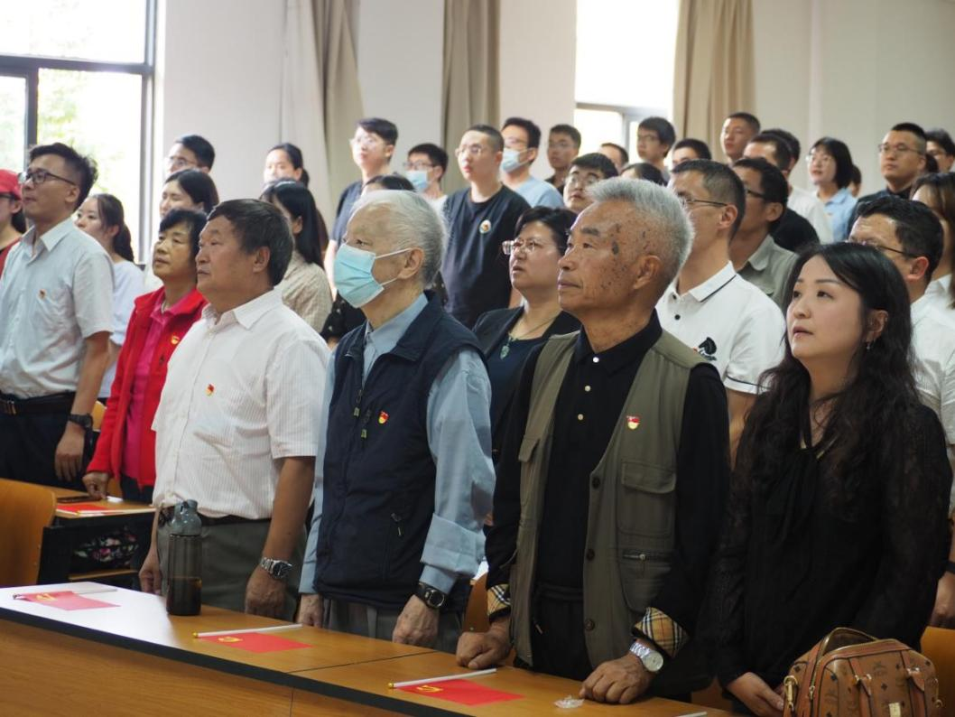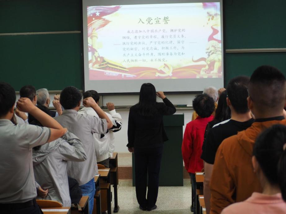 在庄重严肃的氛围中,李娟书记带领全体新党员及在场老党员重温入党誓词,全体党员面向党旗,高举右拳重温入党誓词,神情庄重、声音铿锵,通过重温入党誓词,强化师生党员作为一名共产党员的责任感和使命感。