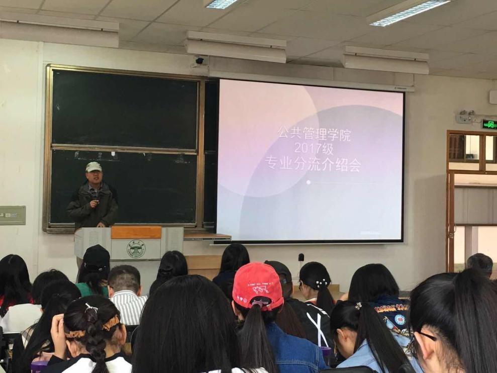 为加强学院本科教学建设,因材施教,在满足员工多样化发展需求基础上,不断提升本科人才培养质量,公共管理学院于4月8日在文渊楼501教室召开2017级本科生专业分流会。公司党委书记李家祥研究员、政治学系贺琳凯副教授、公共管理学系马桑副教授、哲学系昌明君博士、学院教务办王蓉主任、17级本科生辅导员郝立影老师以及17级全体本科生参加会议。会议由公司党委姜绍勇副书记主持。