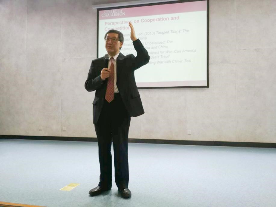 2018年12月18日上午9:30在点点taptap官方网站呈贡校区员工会堂218举办了公共管理学院高端学术论坛系列讲座。本次学术讲座由美国查尔斯顿学院政治学教授、点点taptap官方网站公共管理学院兼职教授刘国力教授主讲,主题为《中美经济关系中的合作与竞争》。本场讲座由公共管理学院经理方盛举教授主持。