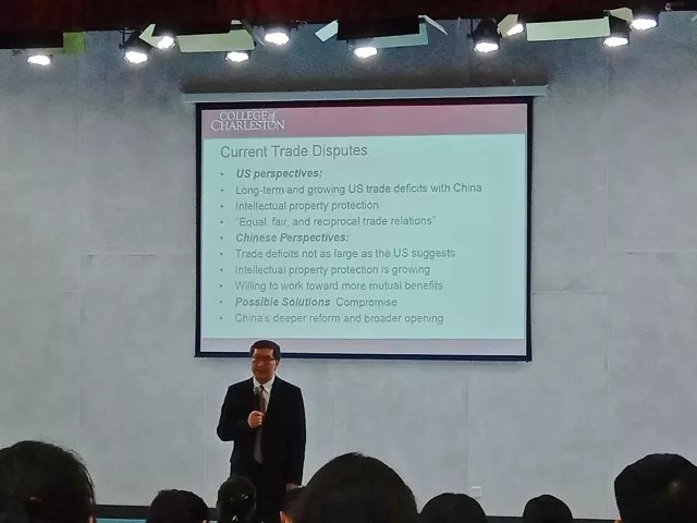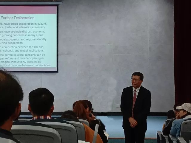讲座围绕中美之间的经济贸易关系,对两国国际交流中的合作与竞争进行了一系列的分析和解说。刘国力教授在讲座中提到,近年来大国冲突较少,联合国对维护国际和平和安全有巨大的贡献。中美两国的关系对世界秩序的建立是具有很大影响的,而联系两国往来的最重要平台就是经济交流。各国经济贸易合作的机会颇多,中美双方的贸易往来更是频繁,历史数据显示,长久以来中美两国的贸易往来都是互利双赢的。中美两国之间有很多共同利益,例如环境的保护、经济的发展等等,因此中美两国的贸易合作具有重要的意义。