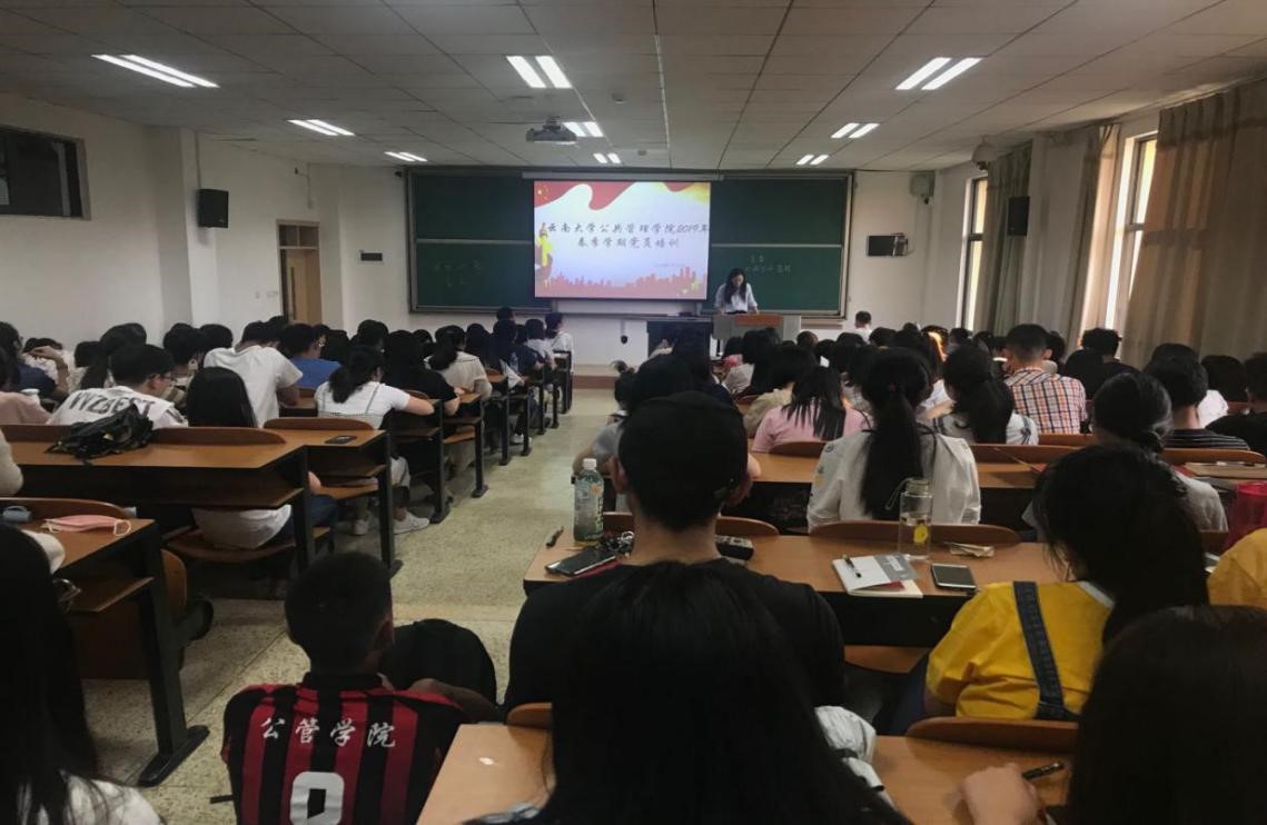 为进一步夯实入党积极分子和发展对象培训质量,强化入党积极分子、发展对象理想信念和纪律教育,做好党员发展工作。按照公司党校培养体系要求,经公司党委研究,于2019年5月10日在文汇楼2302教室开展公共管理学院2019年春季学期党员培训。