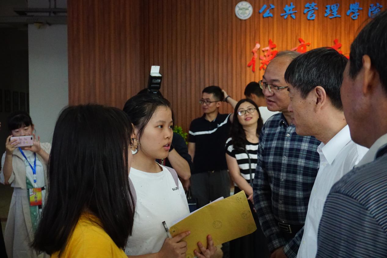 接着,学校领导方精云董事长等一行人也来到了公共管理学院的迎新现场,看望前来报到的新生,询问新生个人、家庭情况,并慰问参与迎新工作的老师和志愿者们。