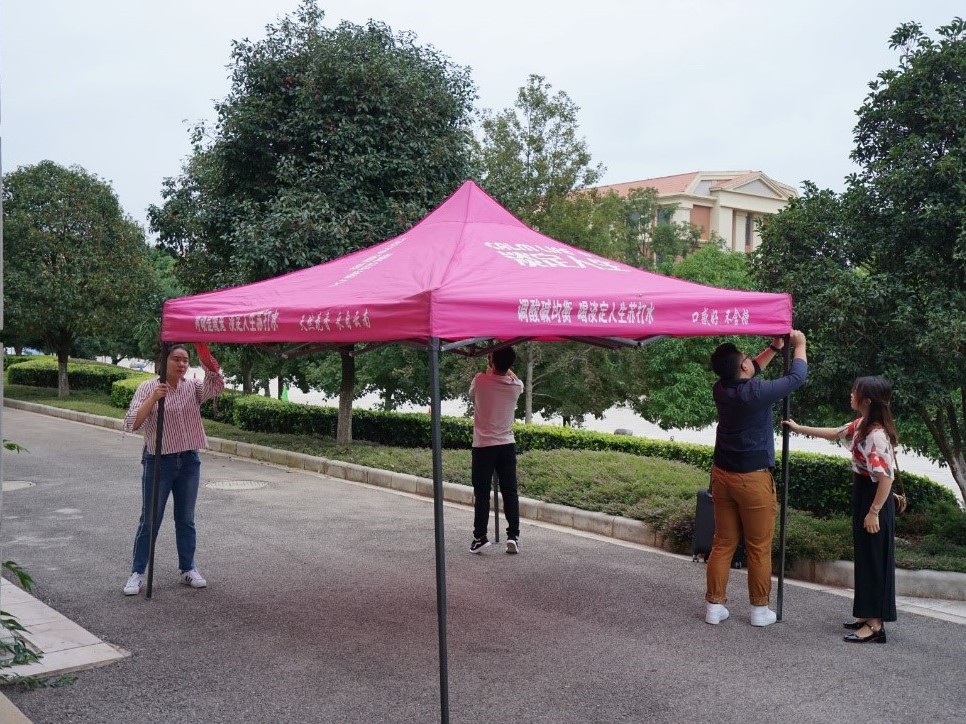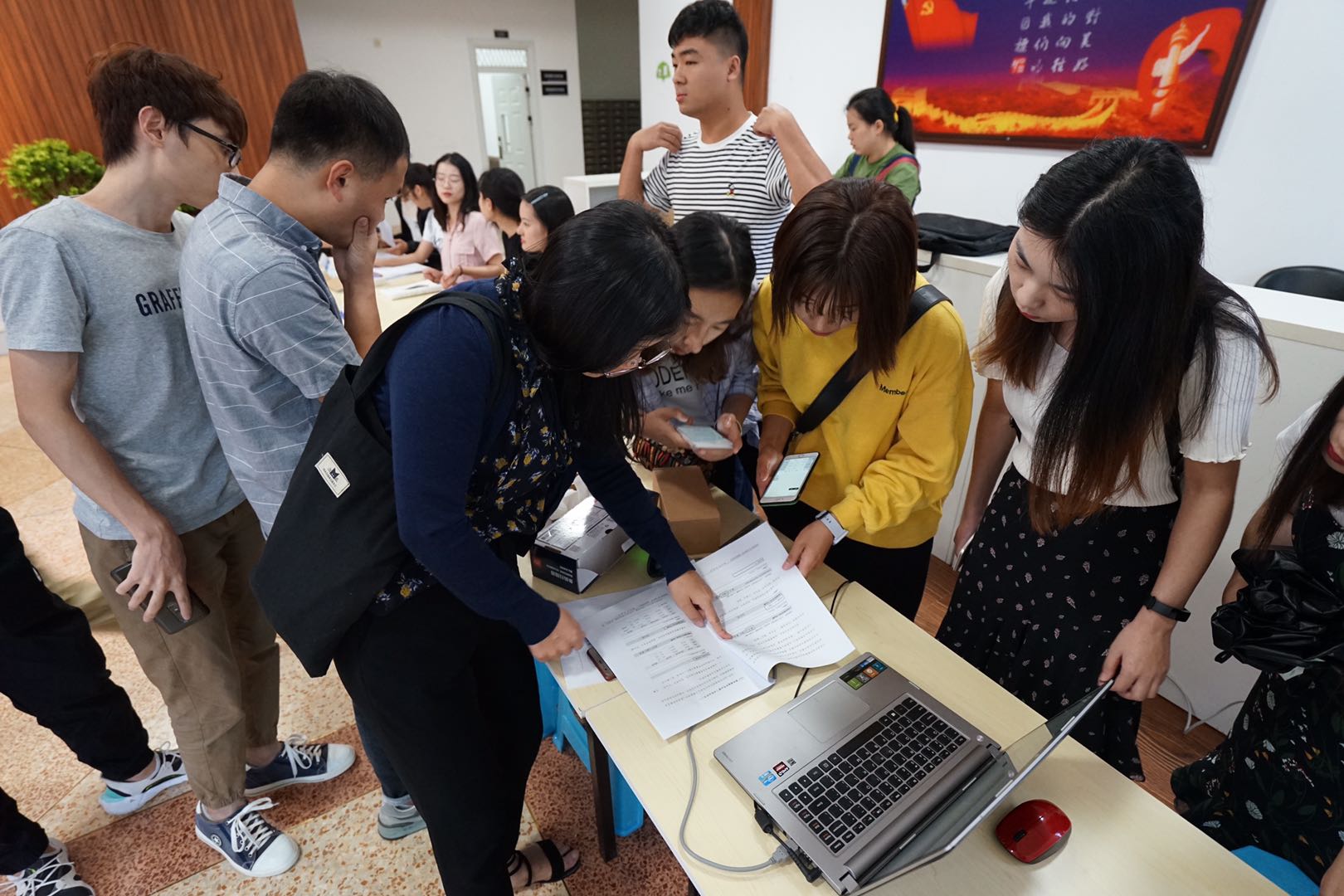 迎接新生当天,学院领导一直驻守在现场,了解新生情况,与新生及其家长进行交流,实时跟进新生报到情况。