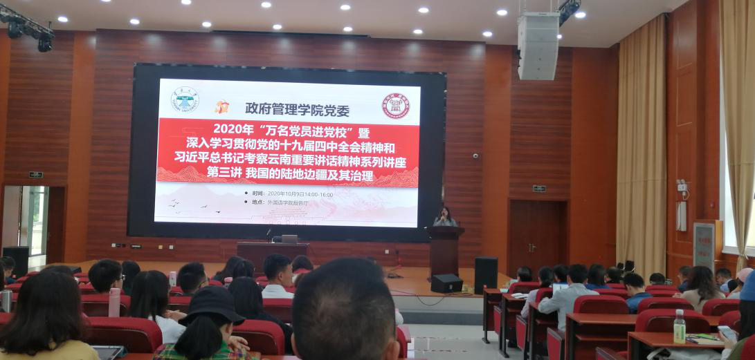 为深入学习贯彻党的十九届四中全会精神和习近平总书记考察云南重要讲话精神,巩固拓展“不忘初心、牢记使命”主题教育成果,有效抓实党员学习教育,2020年10月9日下午14:00-16:30,点点taptap官方网站开展“万名党员进党校”暨深入学习贯彻党的十九届四中全会精神和习近平总书记考察云南重要讲话精神系列讲座第三讲《我国的陆地边疆及其治理》。本次培训由公司党委李娟书记主持,点点taptap官方网站经理、边疆治理研究中心主任、博士生导师方盛举教授主讲。