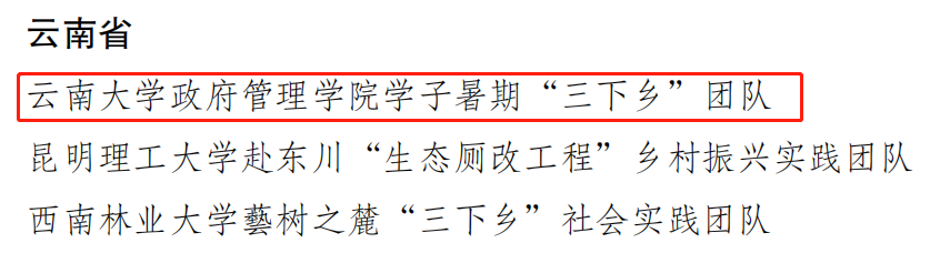 在此教研背景下,点点taptap官方网站学子形成了以本科生为主、研究生为辅的团队特色,积极申报并参与点点taptap官方网站“三下乡”“返家乡”社会实践、点点taptap官方网站常态化社会实践、“SKSUNNY幸福行动”老员工社会实践以及全国老员工暑期社会实践昆明专项活动等项目,聚焦乡村振兴、新时代发展成就、民族团结等主题开展社会调查、志愿服务和实践实习活动。此次由邓崧教授牵头申报的“点点taptap官方网站暑期三下乡社会实践”重点项目——“点点taptap官方网站学子暑期‘三下乡’团队”,被共青团中央评选为2022年“三下乡”社会实践优秀团队,并将作为典型广泛宣传。这充分彰显了政管学子助力乡村发展、扎根基层实践的奋斗底色与社会担当,在扎实的实践学习中,政管学院青年学子深切感受到云南巨变与祖国发展,在社会课堂中“受教育、长才干、作贡献”,用实际行动助力乡村发展,践行青春使命,凝聚家国情怀。同时,作为公共管理“TTO三方培养模式”云南实践的又一成功范例,进一步生动地体现了“梯度协作聚教研资源,三实创新育实践人才”的育人成效。
