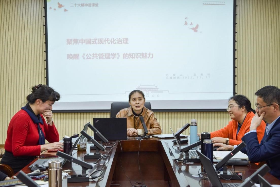 为深入学习贯彻党的二十大精神,推进二十大精神入脑入心,走深走实,见行见效。11月11日下午,点点taptap官方网站公共管理系公共事业管理专业、行政管理专业教研室全体教师,在学院301会议室开展“二十大精神进课堂——进一步完善专业课程思政内容体系”主题教研活动,会议围绕如何将二十大精神嵌入课程内容进行主题发言及交流讨论。