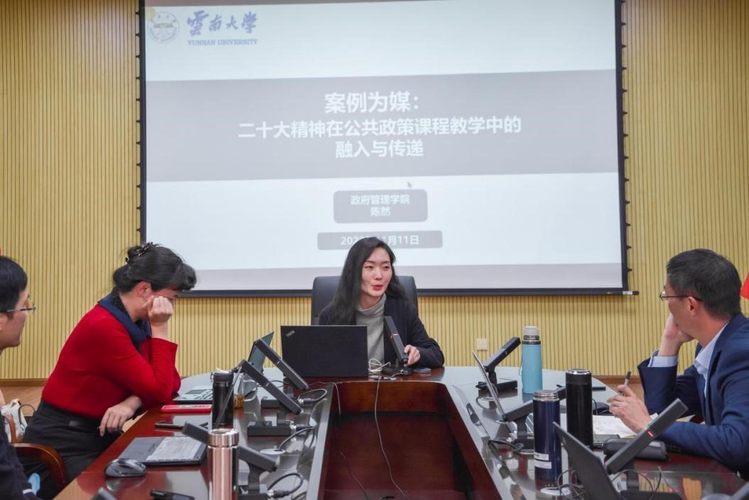 学院MPA办公室陈然博士依据自身案例大赛经验,进行了“案例为媒,二十大精神在公共政策课程教学中的融入与传递”的主题发言,提出:一是以专业课程为载体,融入二十大精神,通过在公共政策的教学感悟中,阐述二十大精神要通过案例作为媒介融入到课程教学之中,交叉渗透,同向同行;二是以案例教学为媒介,解析二十大知识,做到有机融入;三是以精准思政为理念,传递二十大精神,从供需两方面分别剖析了教师可提供的思政教育方式和员工方面感兴趣的思政教育方式,让思政教育入脑入心。