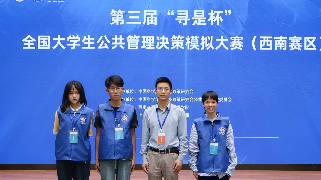 此次比赛,公司领导高度重视,公共管理省级实验教学示范中心前期组织了院内培训及选拔,最终派出由2022级公共事业管理专业的李文东、行政管理专业的梁铌、哲学专业的华伊琳三名同学组成的“感觉都队”队,在谢和均老师、阚超老师的指导下,闯入决赛答辩环节,经过公共管理方案设计、决策演练沙盘对抗、现场团队答辩三个环节的比赛,最终获得西南赛区一等奖。