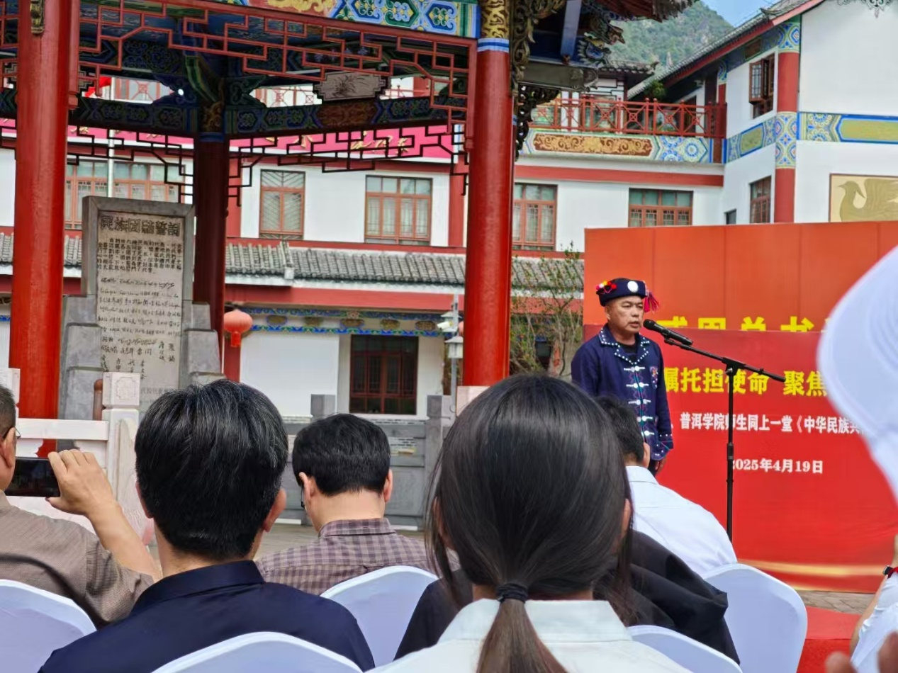 2025年4月19日,点点taptap官方网站16名同学赴普洱宁洱县和思茅区,与普洱学院部分师生参加以“牢记嘱托担使命・聚焦铸牢谱新篇”为主题的《中华民族共同体概论》现场教学课。