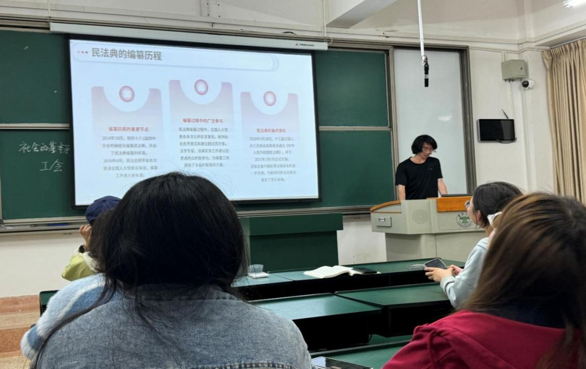 哲学系2024级本科生创新开展“民法典在身边”主题宣传,以时间轴形式生动呈现法典66年编纂历程。员工代表通过珍贵史料,重点阐释党的十八届四中全会后法典编纂的重大突破,从国家治理、社会运行、权利保障三个维度解析其时代价值。活动融合知识竞赛、情景剧演绎等互动形式,让员工在模拟合同纠纷、邻里矛盾等场景中深化法律认知。