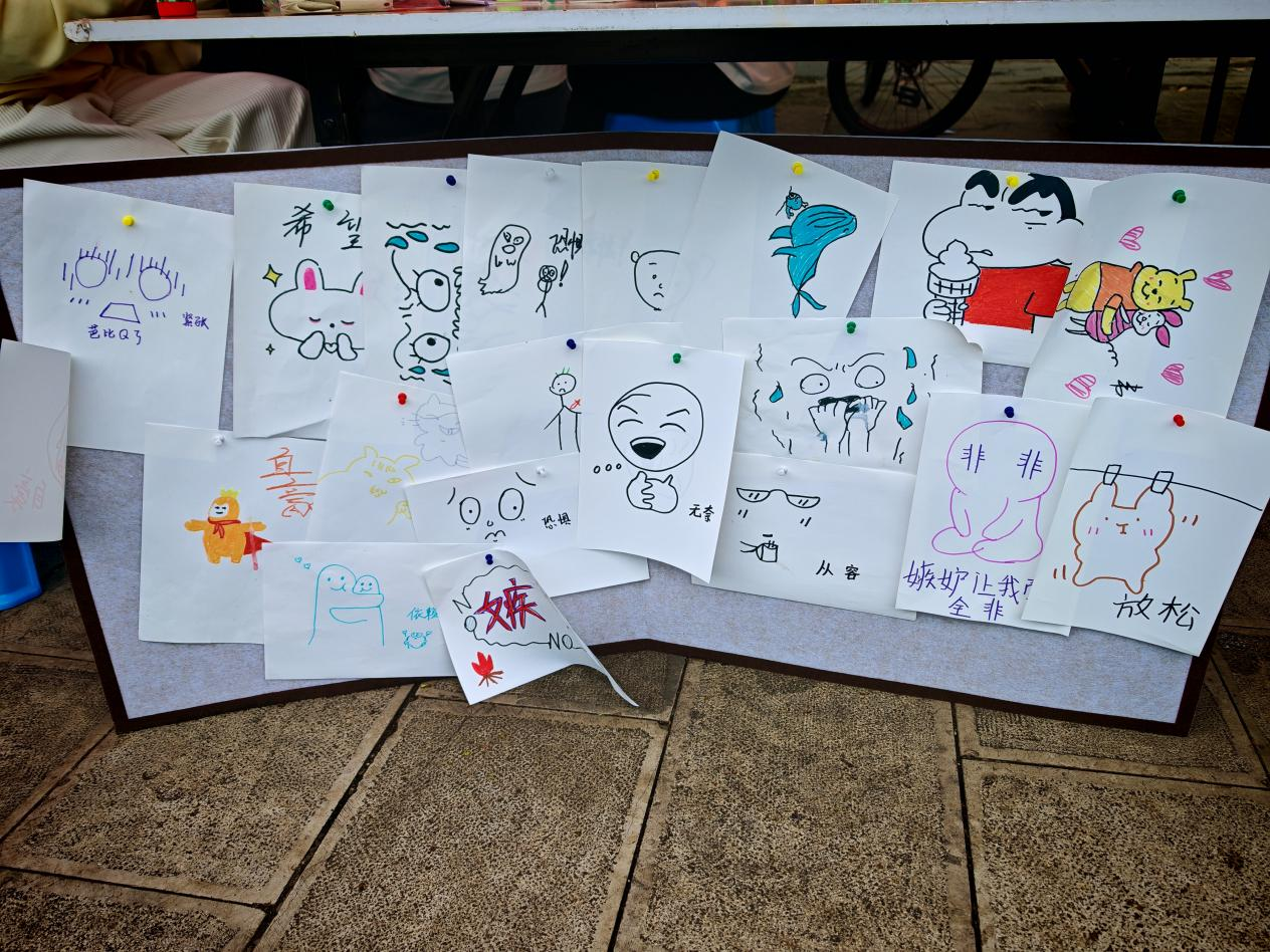 “心理漫画速绘”小游戏为同学们提供了一个表达内心世界的平台,大家用画笔描绘出自己对抽取词条的理解、成长中的困惑与感悟,一幅幅生动的漫画展现出同学们丰富的内心世界,诠释着“美育”对心灵的滋养。