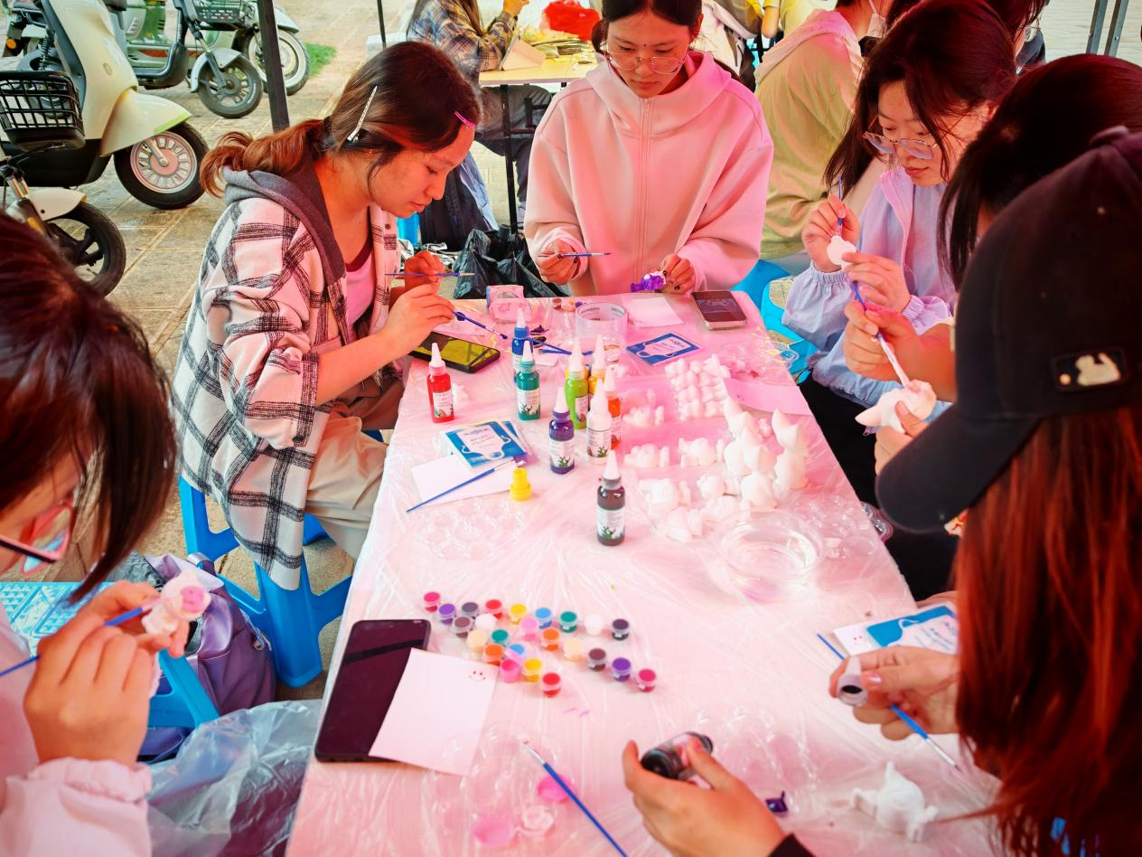同学们充分发挥想象力和创造力,用五彩斑斓的颜料为石膏娃娃赋予独特的个性,现场充满了欢声笑语,同学们沉浸在艺术创作的乐趣中。