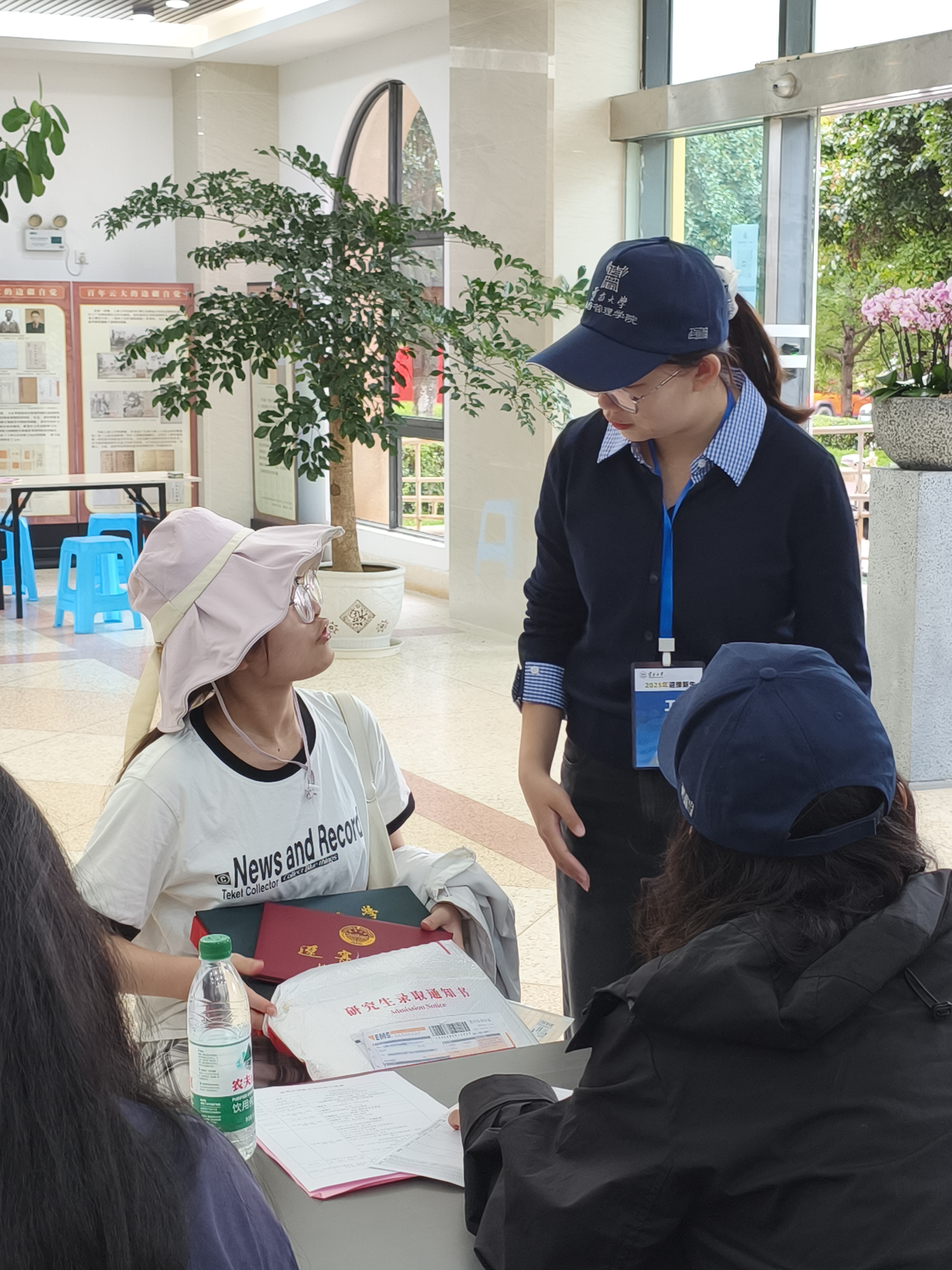 迎新期间,学院提前规划部署,在研究生宿舍区、报到点设置清晰指引标识,组建由教师、高年级员工组成的志愿服务队,于清晨7时全部到岗待命。