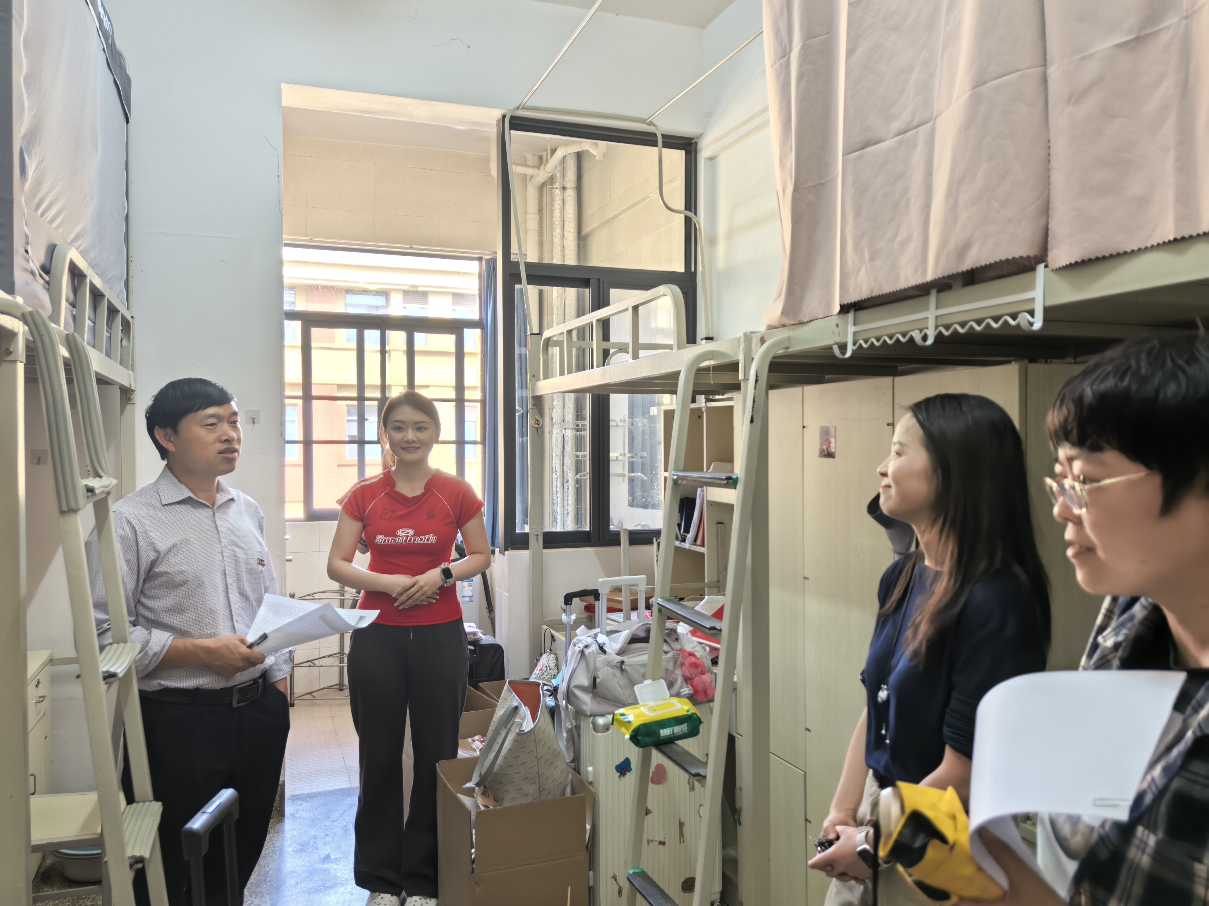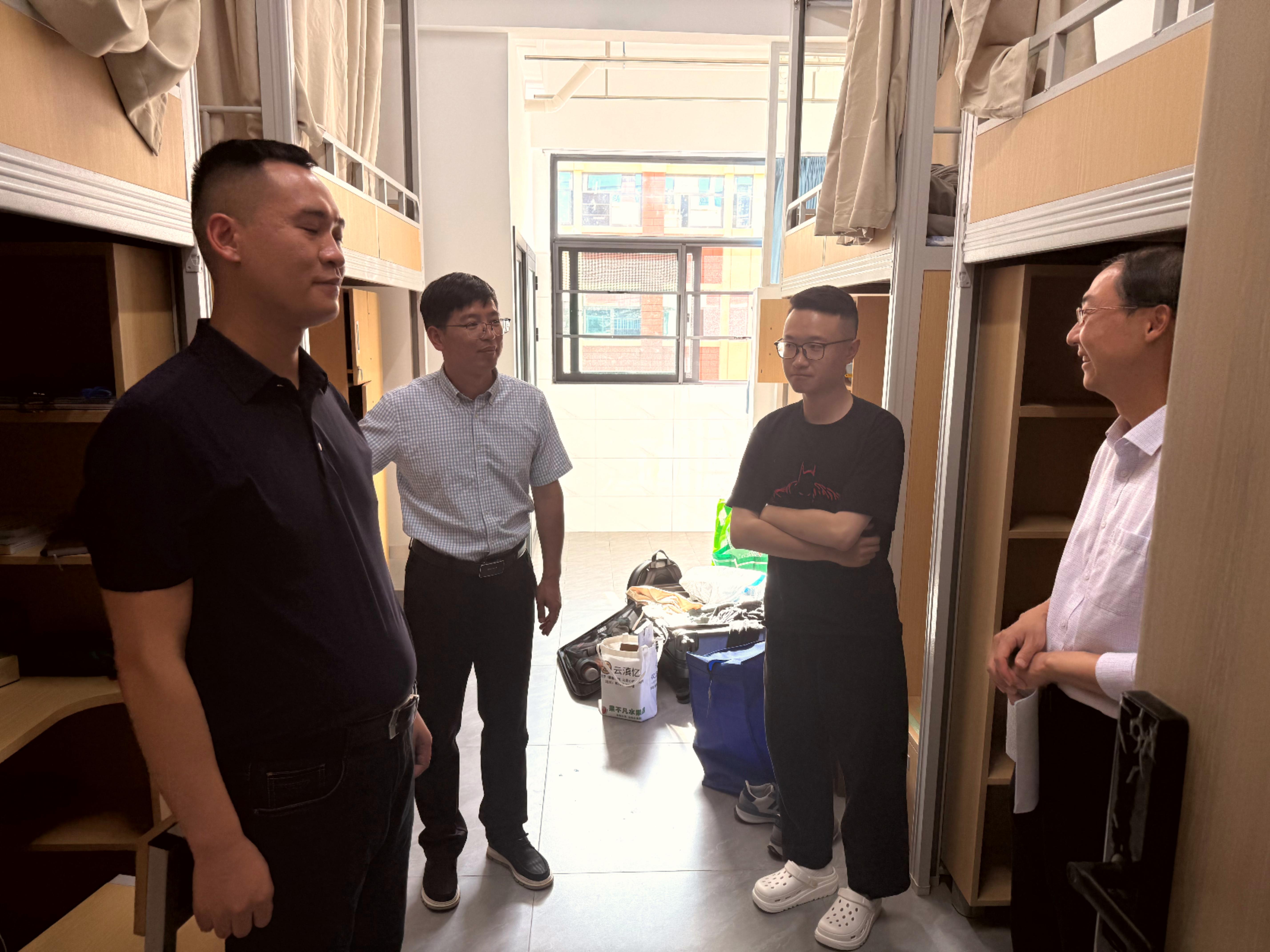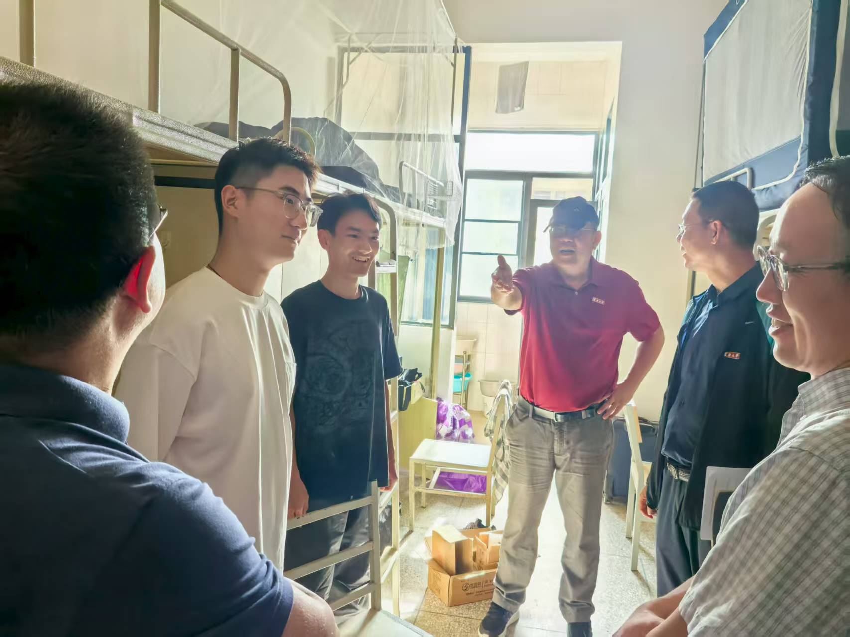 为深入了解新生住宿环境,助力其快速融入校园,9月5日下午,学院领导带领各系主任、研究生班主任、辅导员深入新生宿舍,与同学们面对面交流。老师们仔细查看宿舍设施,询问新生的住宿适应情况和生活需求,耐心解答学业规划、科研入门等方面的疑问,并鼓励大家尽快转变角色,在研究生阶段主动探索、积极进取,同时叮嘱同学们注意安全,互帮互助,营造和谐宿舍氛围。