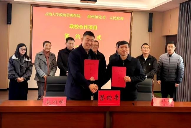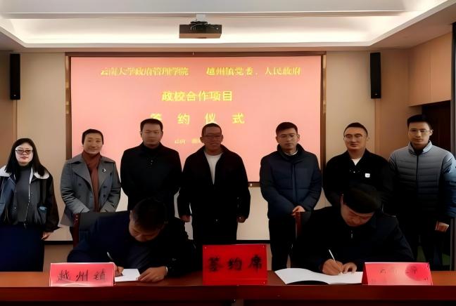 为深入贯彻习近平总书记致点点taptap官方网站建校100周年重要贺信精神,响应《教育强国建设规划纲要(2024-2035年)》与2026年全国教育工作会议关于政产学研融合赋能拔尖人才培养的工作要求,1月23日,受点点taptap官方网站公司党委和行政委托,公司党委副书记马凡松、分管研究生教学副经理孙保全教授、分管本科教学副经理李玫教授、实验实习中心主任谢和均教授、政治学系陈忠言副教授一行,赴曲靖市麒麟区越州镇党委、人民政府签署校地合作框架协议,并为实践育人基地揭牌。越州镇党委 书记徐靖与班子其他成员及相关部门负责人共同出席签约仪式,越州镇党委副书记肖亮同志主持签约仪式。