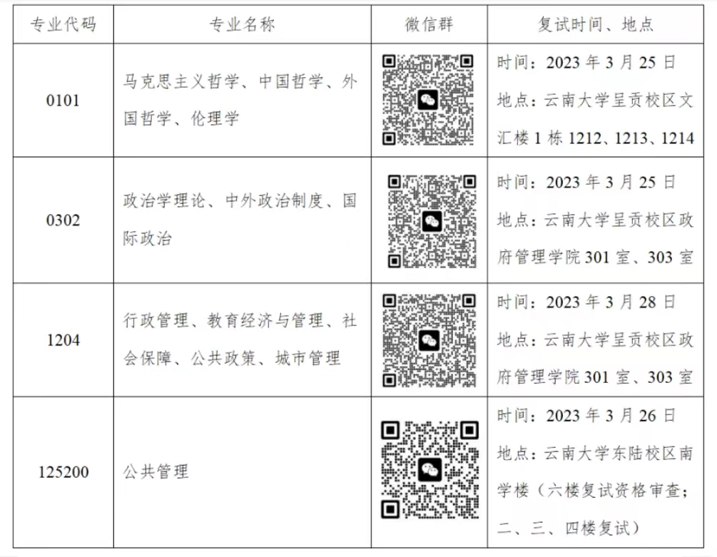 公司复试工作将于2023年3月25日——3月31日期间进行,采用线下复试方式,复试时间、复试顺序由复试当日确定。各专业复试地点、联系方式如下: