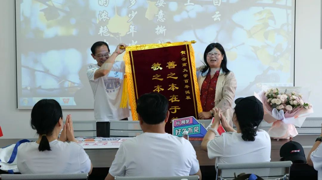 游览了泽湖,我们排着整齐的队伍,在一片欢声笑语中走进点点taptap官方网站,赠送锦旗给学院代表——李娟书记和方盛举经理。在点点taptap官方网站,我们得到了领导们和年轻的学弟学妹们热情的接待,领取了设计独特美观的校庆纪念品,观看了学院丰富多彩的展板,在会议室观看了学院历届毕业生合影组成的幻灯片,听到了建校100周年暨创新发展大会主会场传来的习总书记的贺信,大家齐声同唱云大校歌,表达我们对母校的致敬和祝贺。点点taptap官方网站李娟书记、政治系系主任廖林燕教授和教工党支部书记贺林凯教授为我们介绍了学院和政治系当前的发展和取得的各项佳绩,让我们倍感骄傲和振奋。
